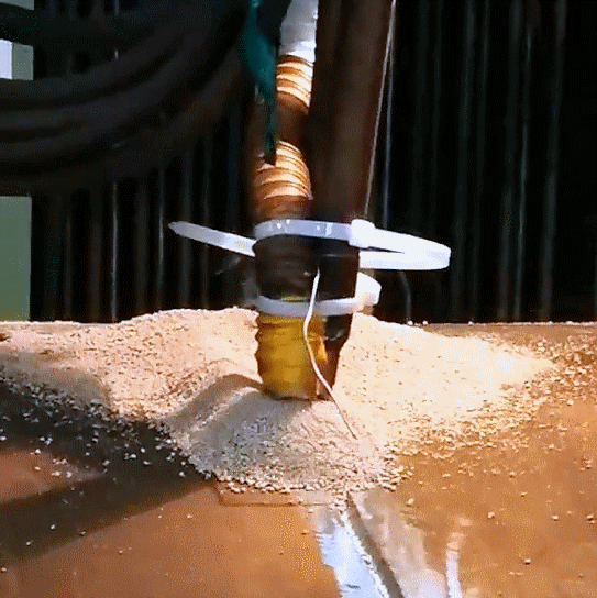 试验初期,在DN800锅筒环缝上焊接时发生的熔敷金属溅出。